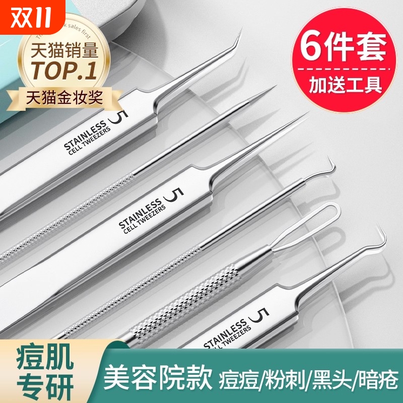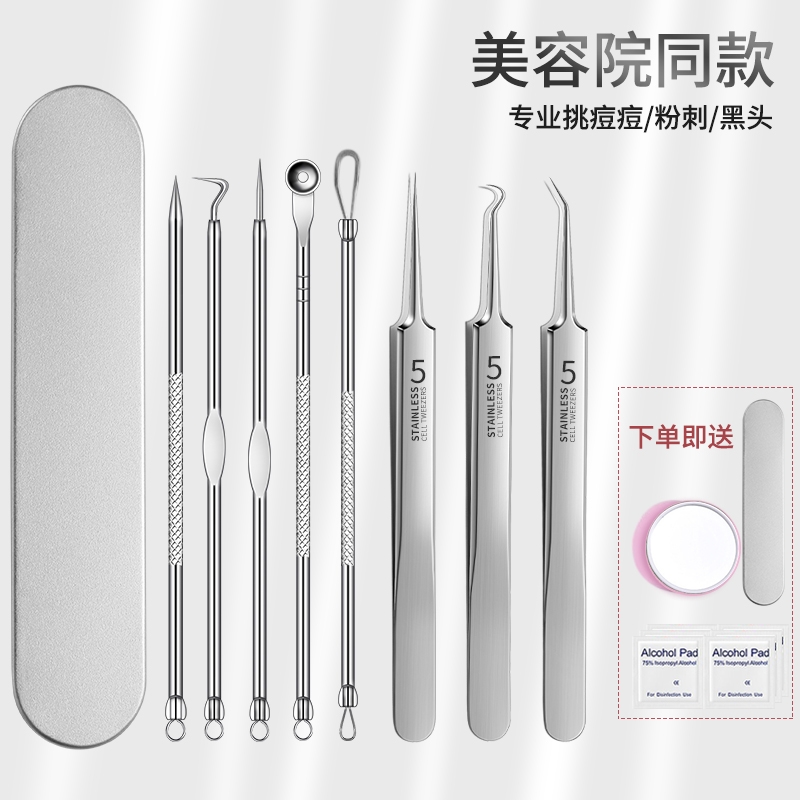 超尖细胞夹粉刺针套装去黑头闭口镊子挤痘痘暗疮针美容院专用工具
