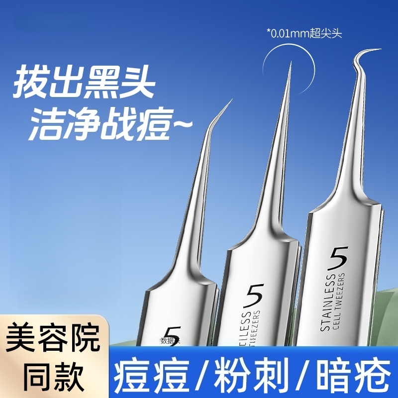 细胞夹黑头超细镊子高精密粉刺针美容院专用清洁痘痘工具暗疮针清