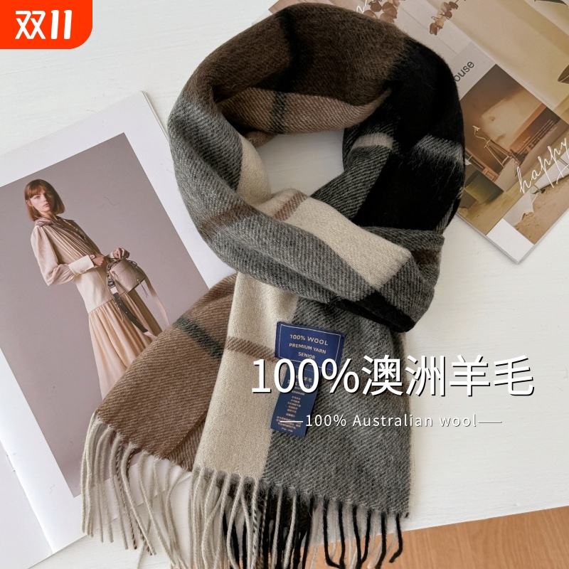 精选澳洲wool纯羊毛秋冬礼物情侣围巾格子围脖加厚保暖男女披肩