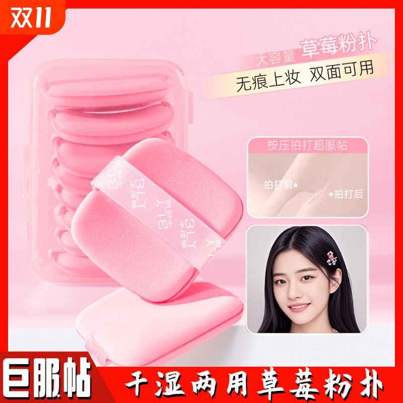 加厚草莓饼干气垫粉扑软糯Q弹服帖干湿两用不吃粉不卡粉底美妆蛋