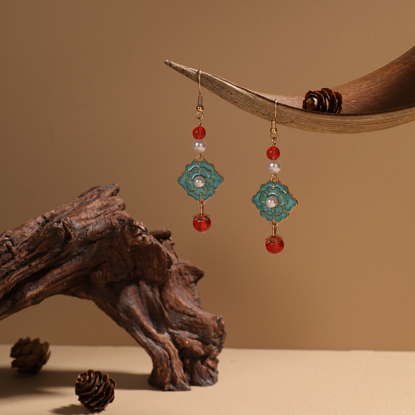 仿真沉木拍照道具可可叶造景干花