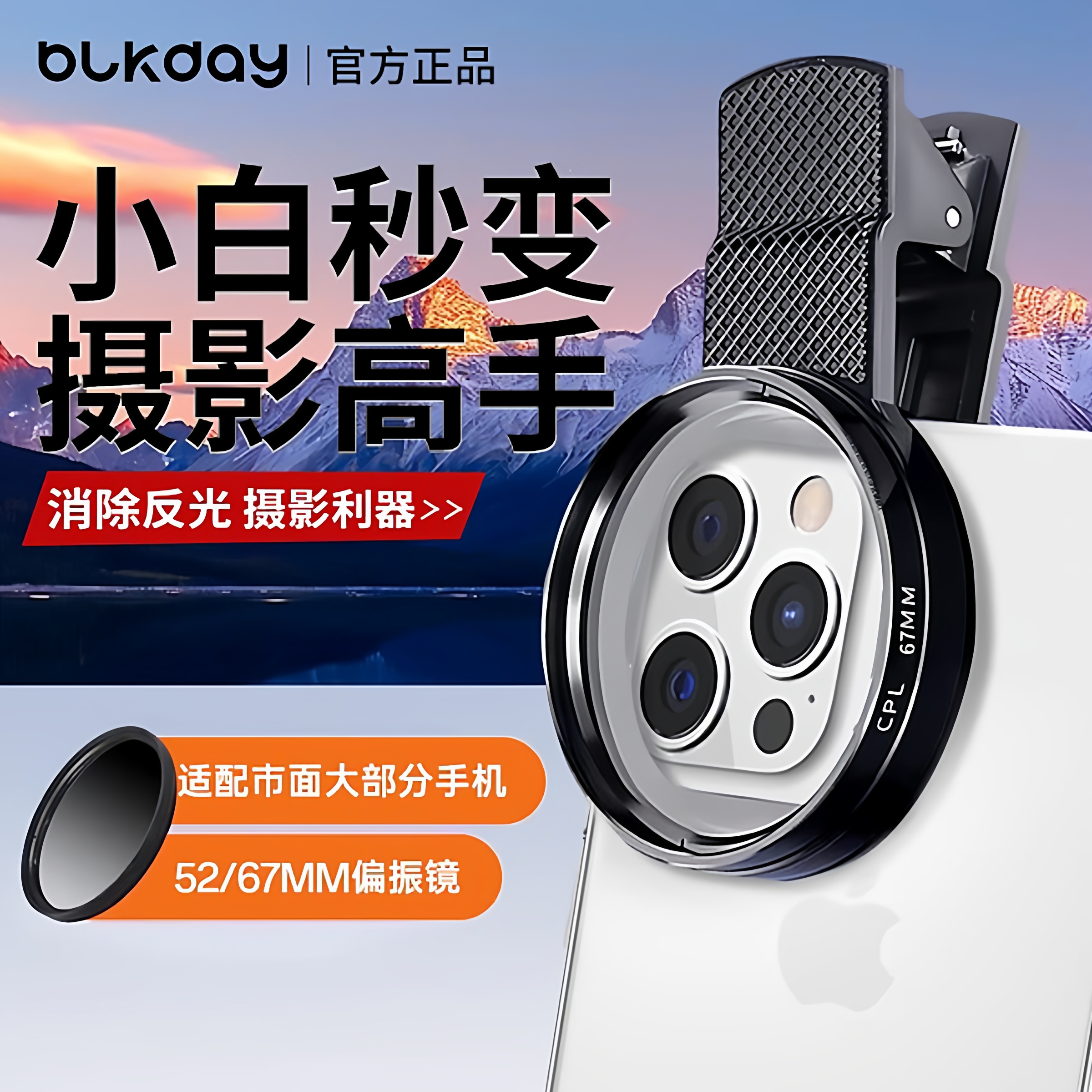 黑段手机偏振镜头2025新款高清镀膜偏光消除水面反光滤镜外接摄影