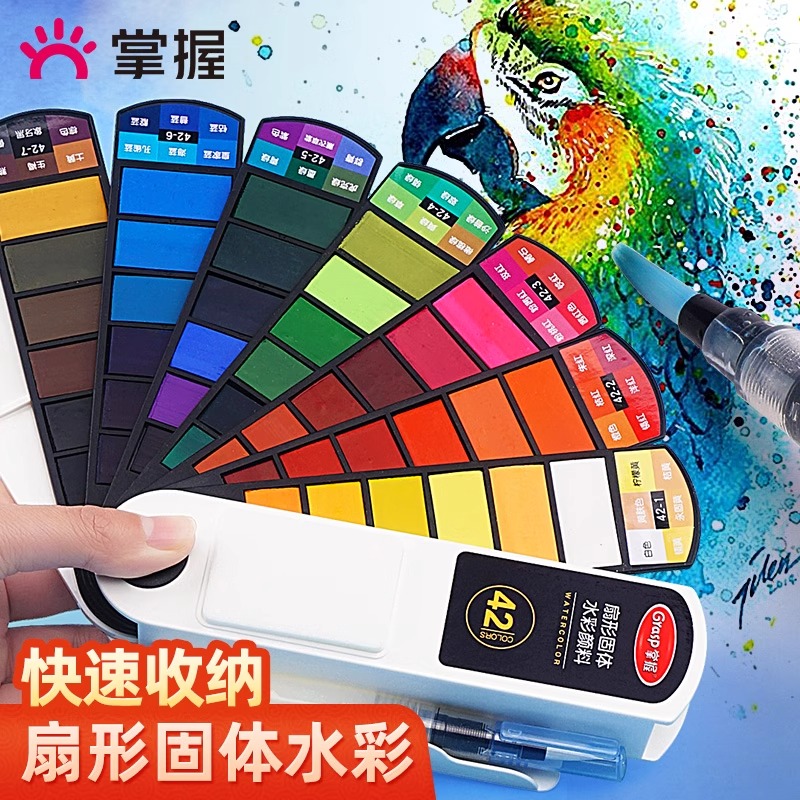 掌握扇形固体水彩颜料小学生美术专用便携24色初中生36色水彩画工