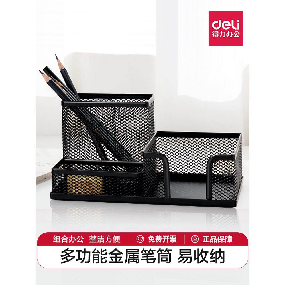 Deli金属笔筒学生多功能收纳笔筒办公室组织者桌面装饰品大容量笔