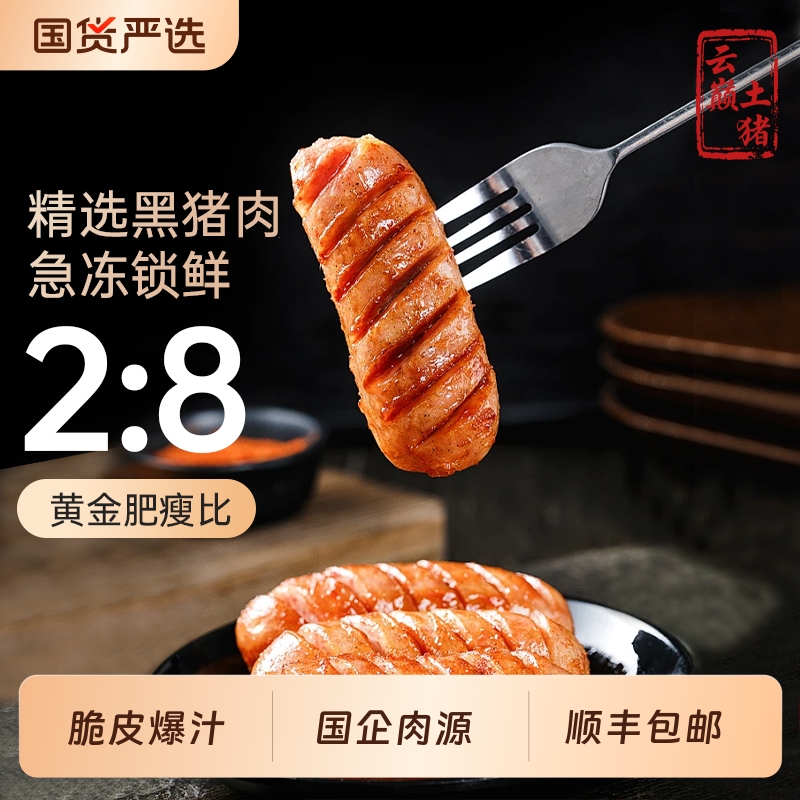 云巅土火山石烤肠无淀粉土猪肉烤肠地道热狗脆皮火腿肠烧烤空气炸