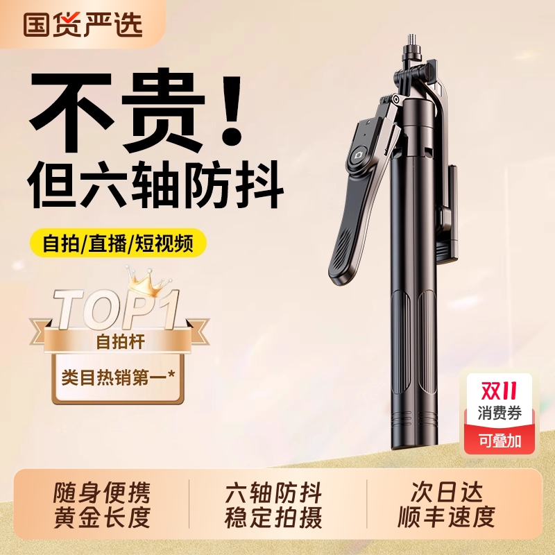 2025新款自拍杆三脚架蓝牙六轴云台手机通用防抖拍摄直播支架自拍