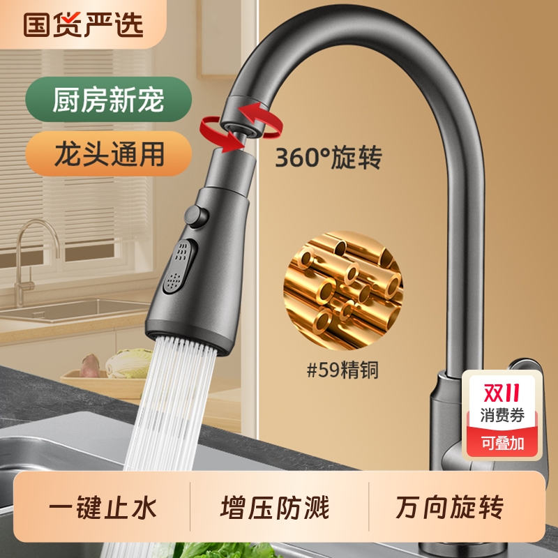 水龙头延伸器防溅水神器厨房专用万向能万接头加长增压水嘴起泡器