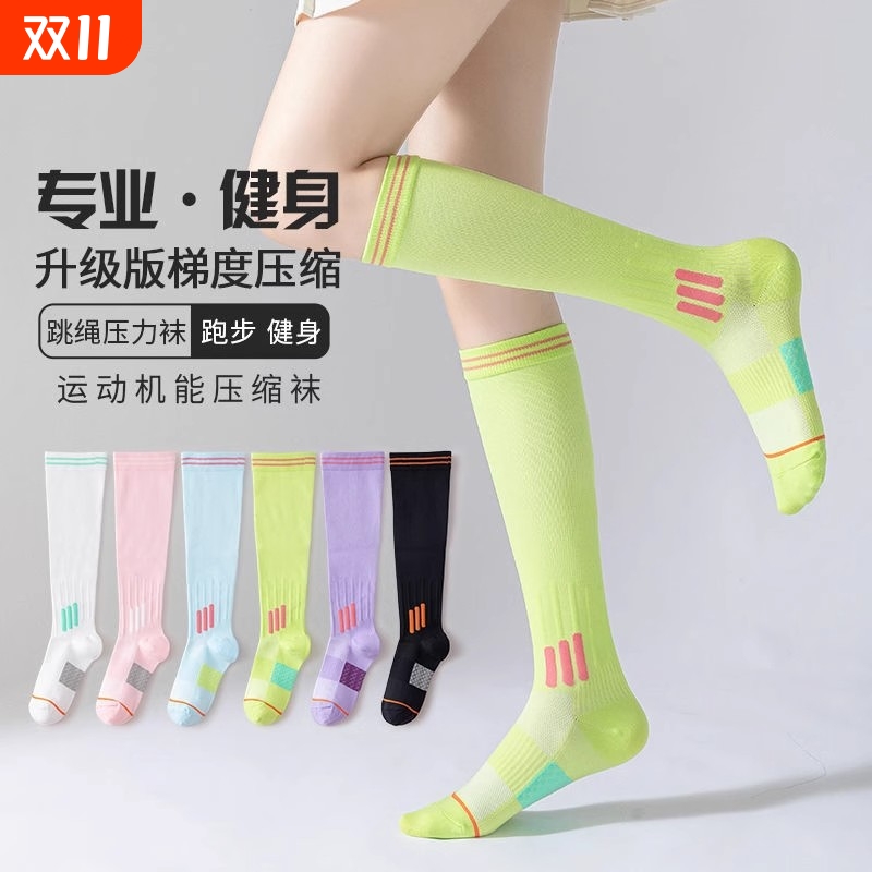 专业肌能压力小腿袜子女长筒袜夏季薄款运动跑步跳绳加压缩弹力袜