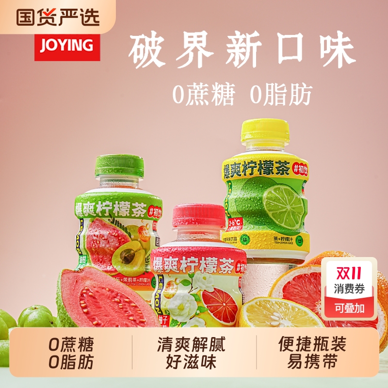 初饮爆爽柠檬茶0蔗糖0脂肪蜜桃汁清爽解腻420g网红热卖饮料饮品