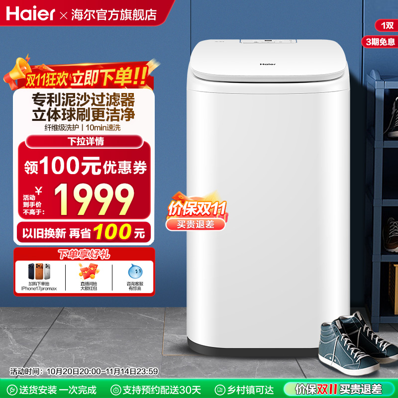 换新补贴海尔全自动洗鞋机刷鞋大容量杀菌防脚气洗脱直驱278