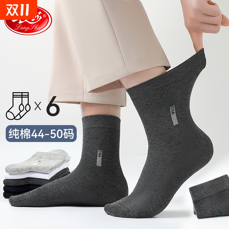 浪莎大码袜子纯棉男50码秋冬季中筒袜全棉大脚45加肥加大号48长