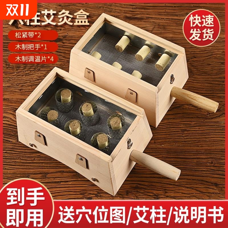 实木艾灸盒随身灸家用中医木制仪器具罐肚子腰腹部全身通用温灸箱