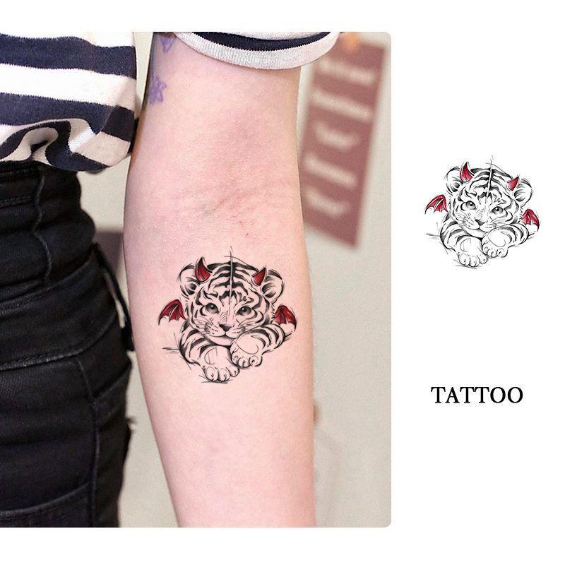 幼态小虎彩色纹身贴可爱甜酷辣妹个性少女心手臂腹部男女纹身贴纸