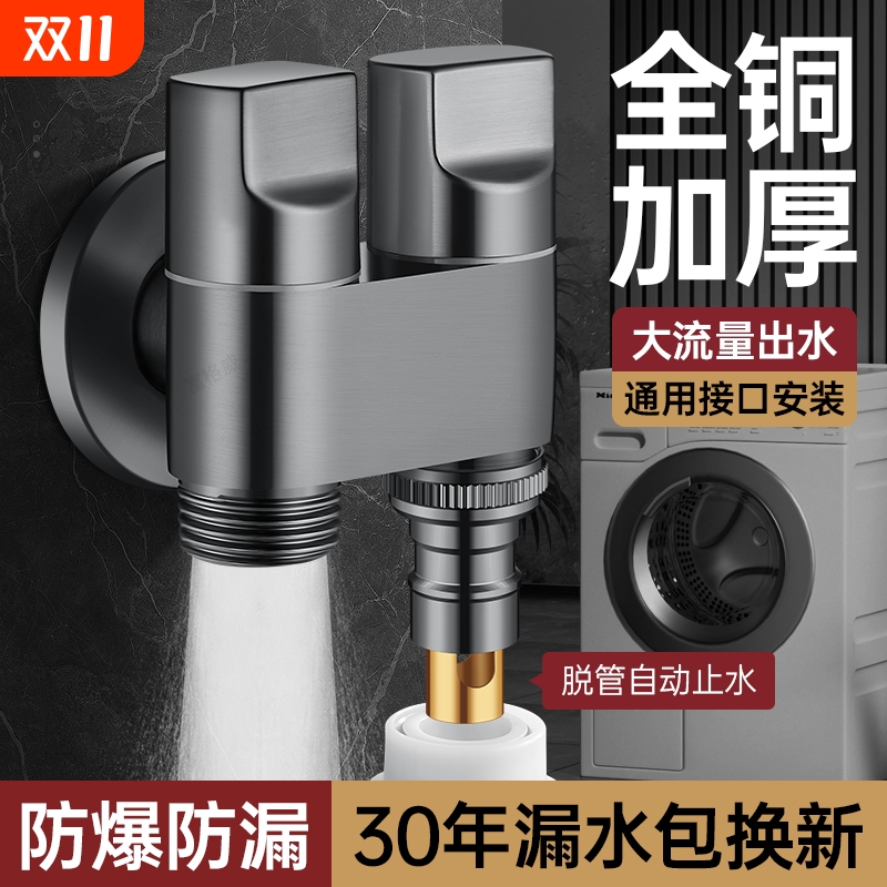 双出水洗衣机水龙头角阀一进二出专用双龙头自动止水阀一分二接头
