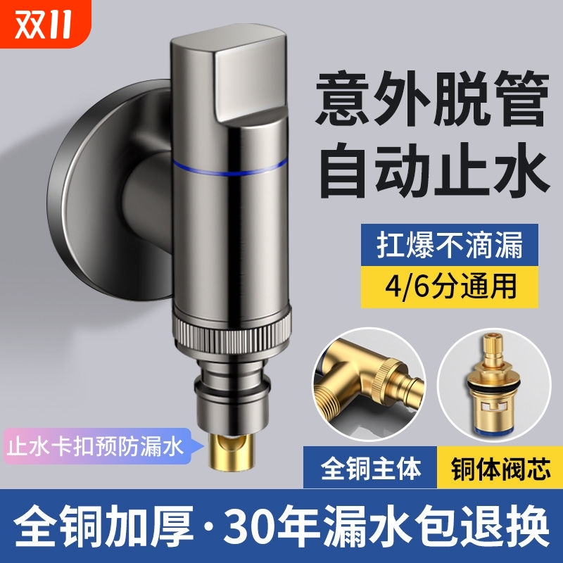 铜特短小水嘴迷你自动止水角阀龙头防脱落洗衣机专用水龙头水管