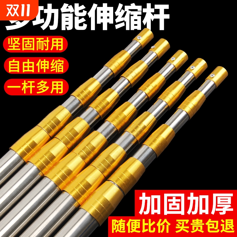 不锈钢抄网杆万能伸缩杆高空摘果杆杆槐花杆镰刀鱼叉收缩钩鱼自由