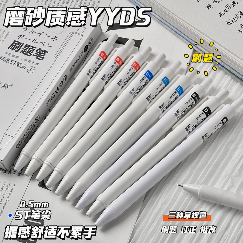 中性笔刷题蓝笔红笔黑笔蓝色笔芯按动专用小学生用按压式红蓝黑三色圆