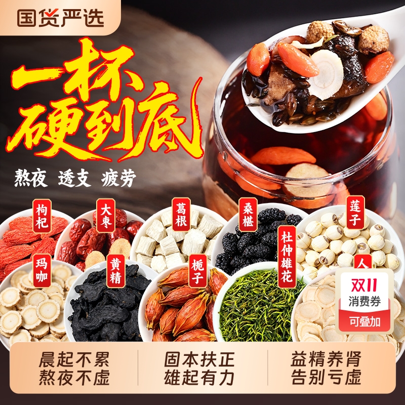 黄精人参中药材养生茶男补枸杞八宝茶男士官方旗舰店气血黄芪党参