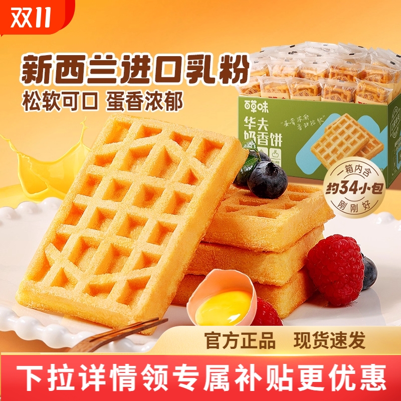 百草味华夫饼970g面包营养早餐整箱即食蛋糕健康食品零食糕点心