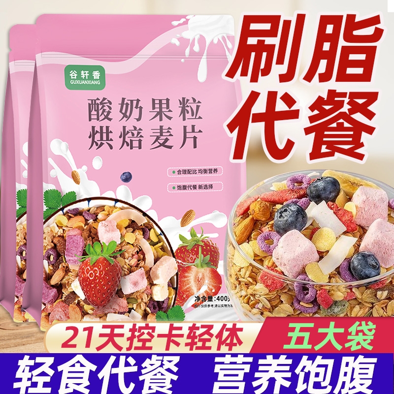 麦纤之控烘焙燕麦片水果高饱腹即食早餐营养代餐五黑混合黑巧格兰
