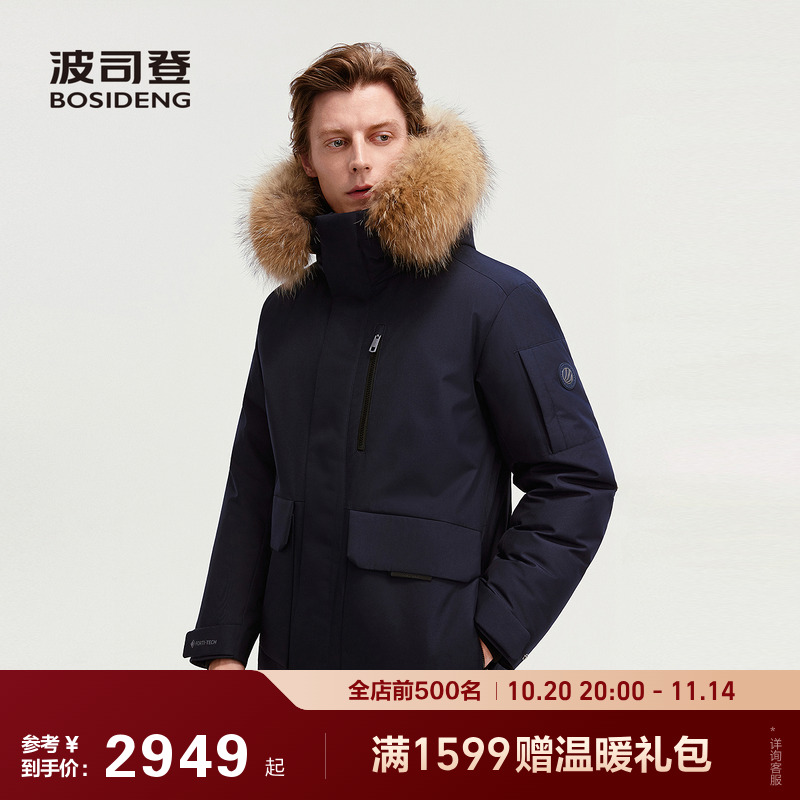 波司登户外极寒中长毛领羽绒服男