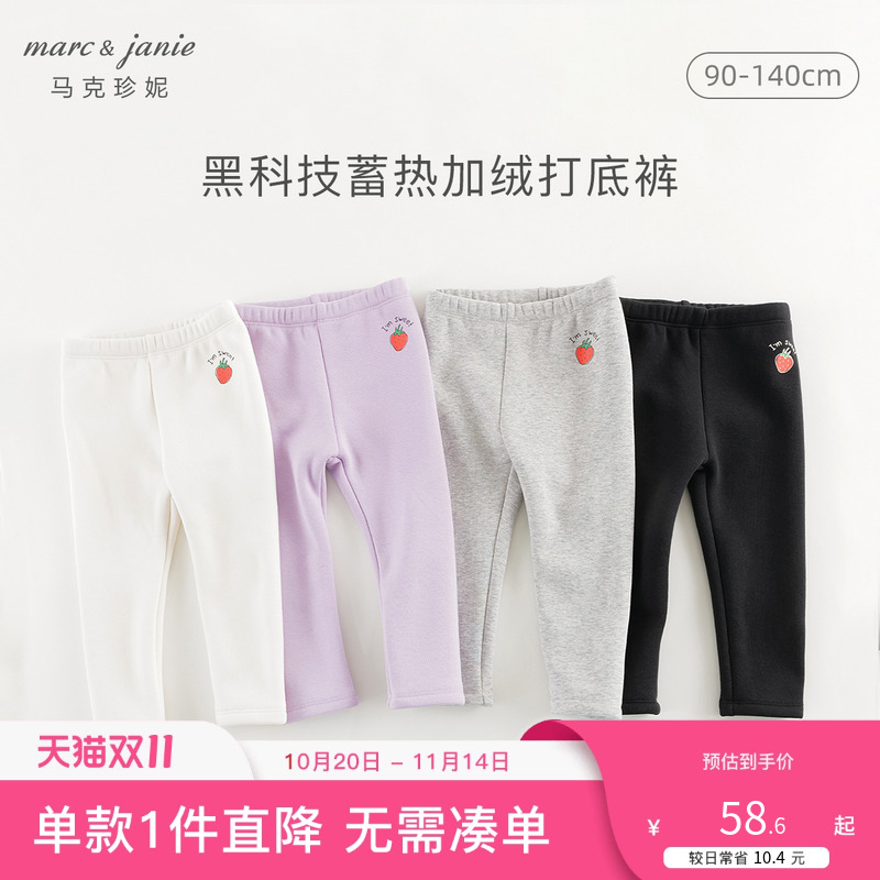 马克珍妮女童加绒弹力保暖打底裤