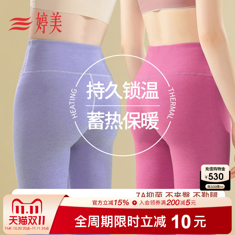 婷美高腰无痕双面磨毛蓄热保暖裤