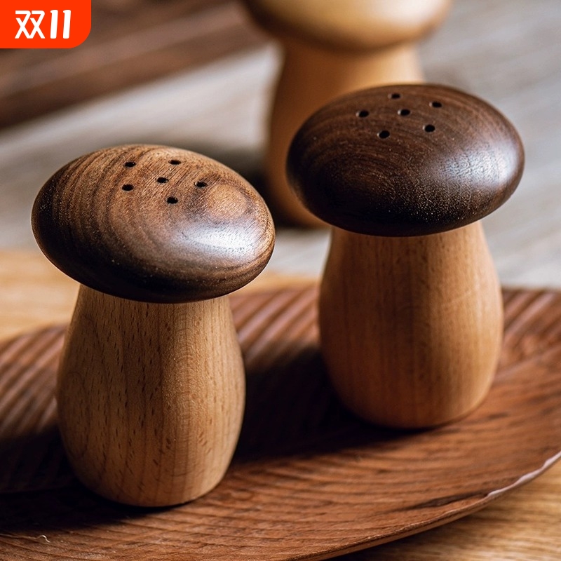 创意复古蘑菇牙签盒家用高颜值胡桃木质可爱中式古风轻奢摆件实木