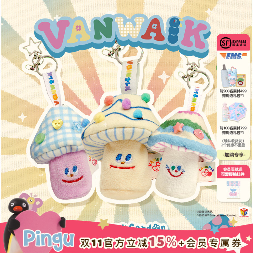 VANWALK小花园 自制可爱蘑菇包包装饰挂件毛绒公仔背包挂饰收