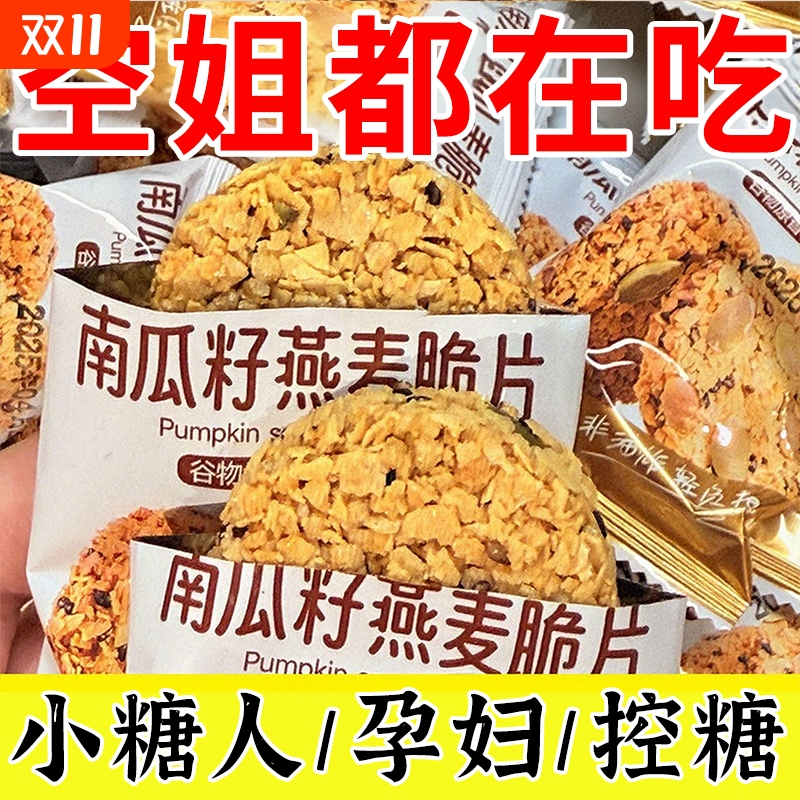南瓜籽燕麦脆片谷物全粗粮饱腹代餐无蔗糖高蛋白营养饼干解馋零食