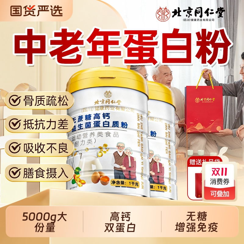 同仁堂蛋白粉蛋白质粉中老年人增强免疫力营养高钙正品优质双蛋白
