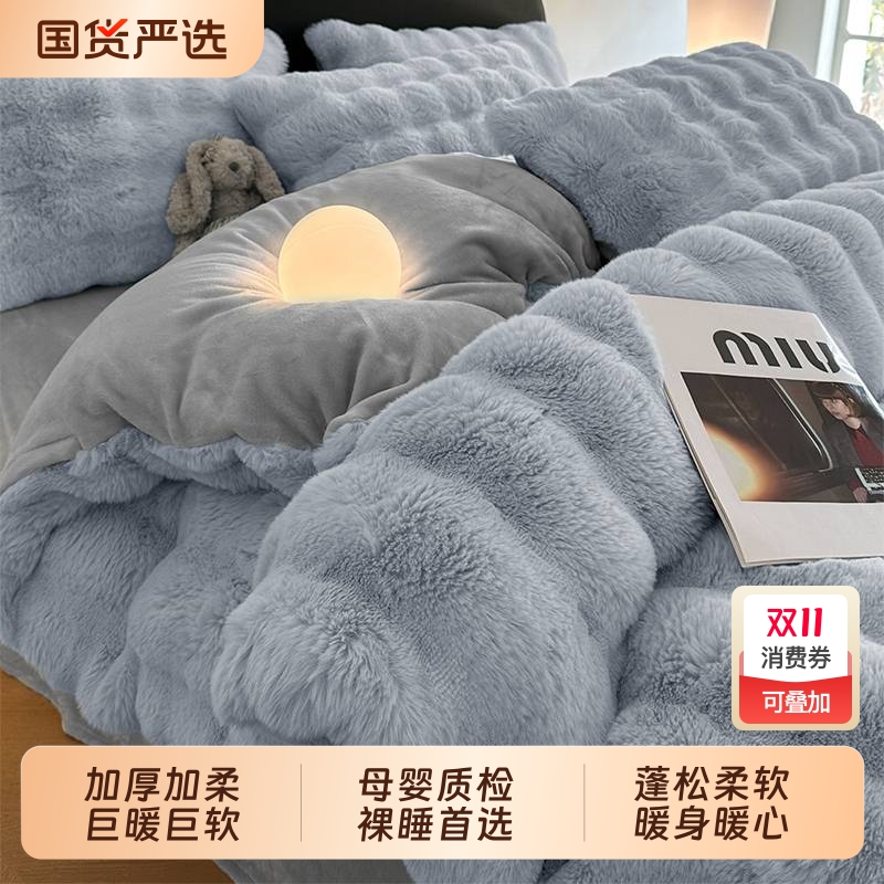 花花公子兔兔绒豆豆被冬季加厚A类单人学生宿舍珊瑚绒盖毯冬被芯