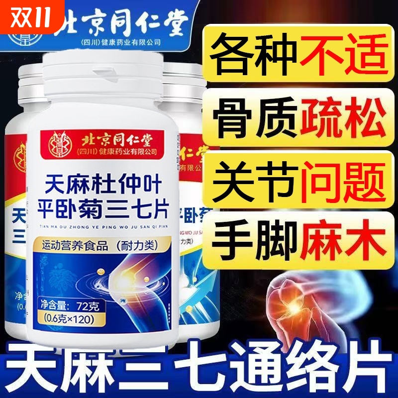 同仁堂天麻三七通络片杜仲叶平卧菊三七手脚麻木氨糖健康xx