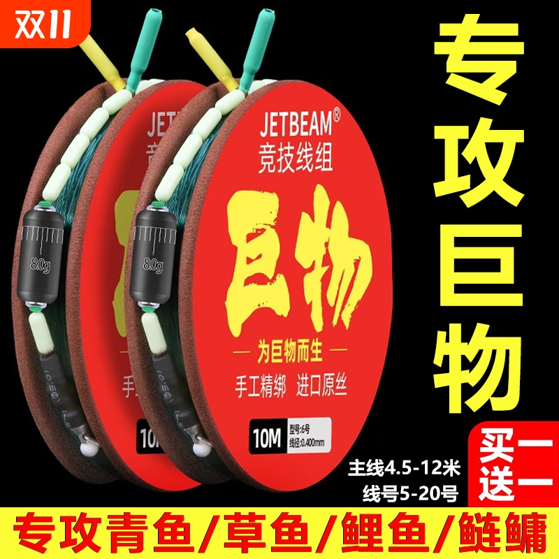 大师精绑大物线组套装草青鱼鲟鱼巨物配件加强节鲢鳙主线组成品