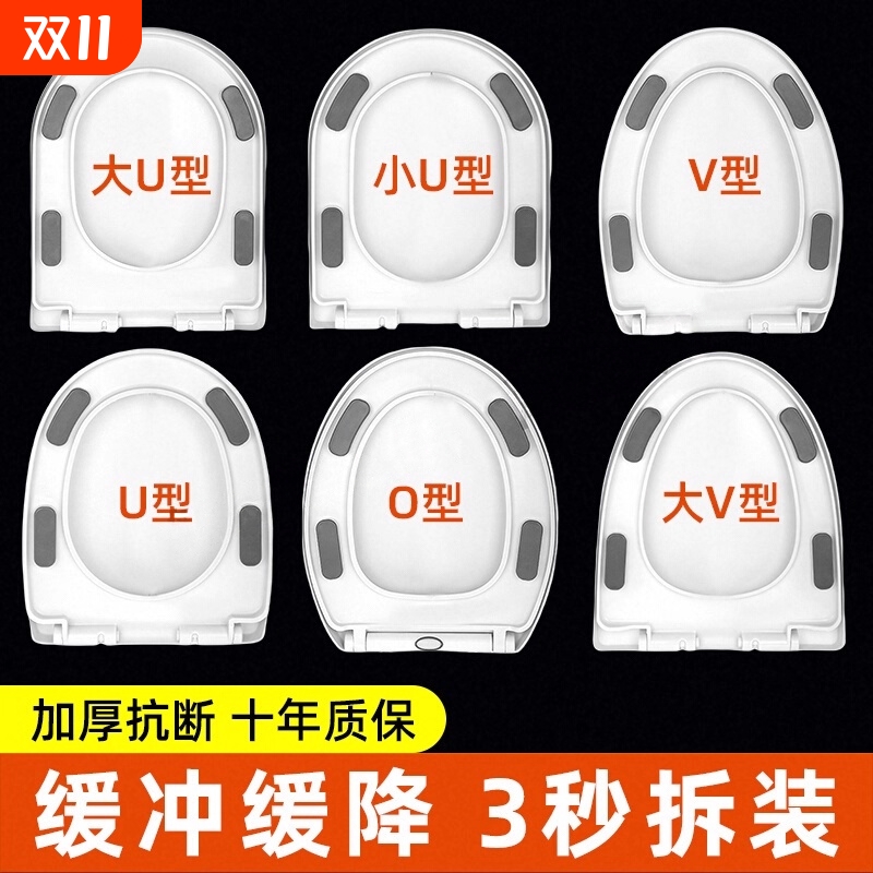 马桶盖家用通用加厚缓降UVO型坐便器盖板马桶座便坐圈盖配件盖子