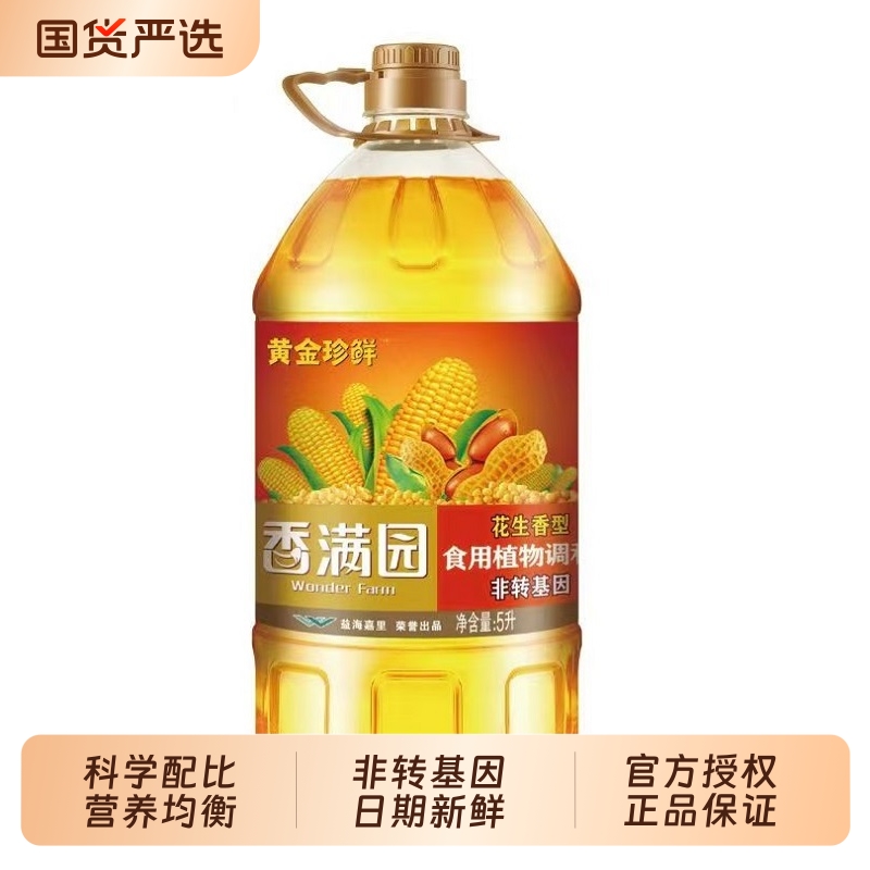 食用油香满园黄金珍鲜花生浓香型食用植物调和油5L*4桶大豆芝麻
