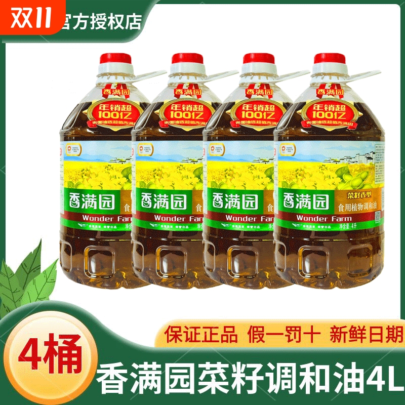 【整箱4桶】香满园菜籽香型食用植物调和油4L家用商用炒菜油正品