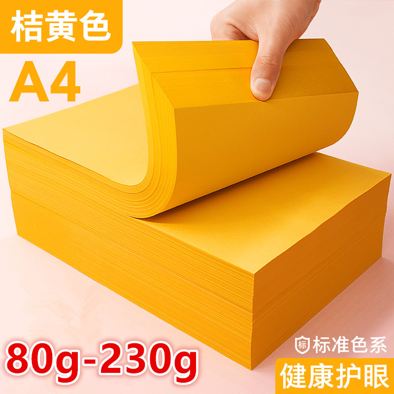 A4金黄色80g打印纸柠檬黄黄纸230g硬卡纸彩色复印纸彩纸超市