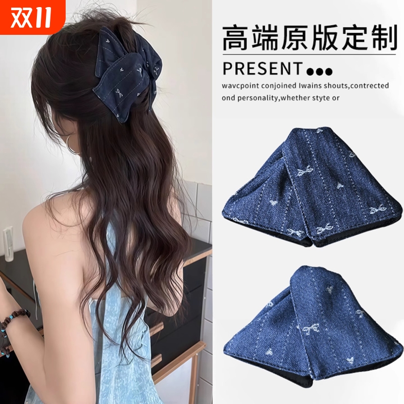 饱满牛仔蝴蝶结贝壳三角抓夹头饰2025新款高级感夏季后脑勺发夹女