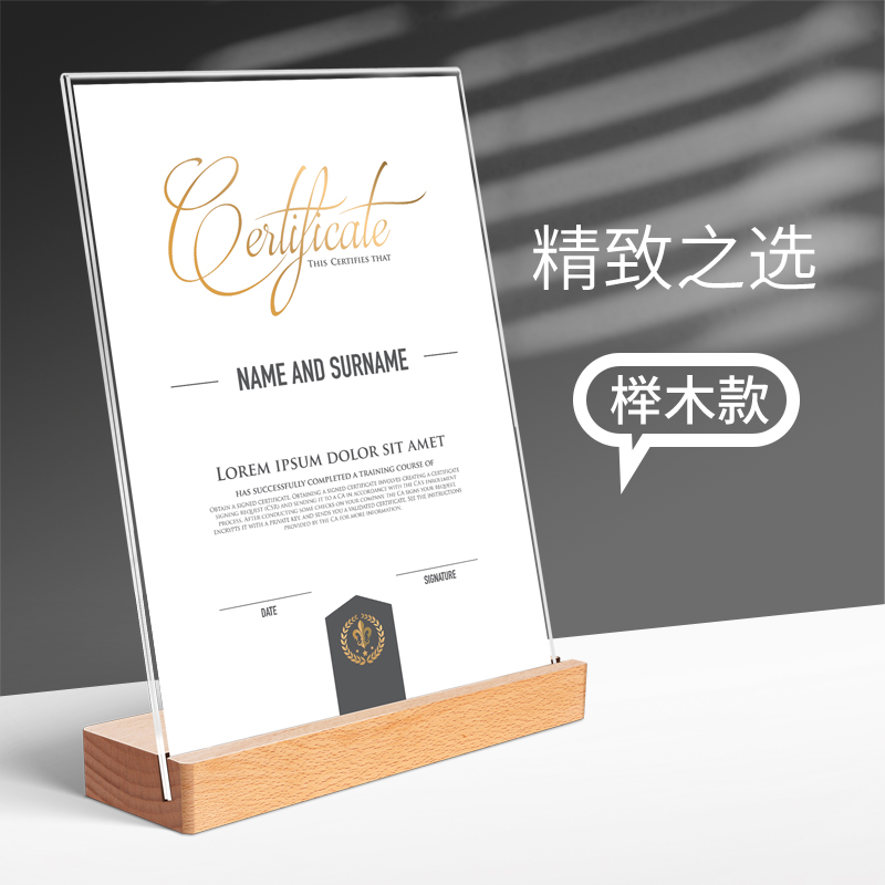 亚克力台卡架展示牌A4立牌m桌牌木质底座台卡签桌面展示台牌双面