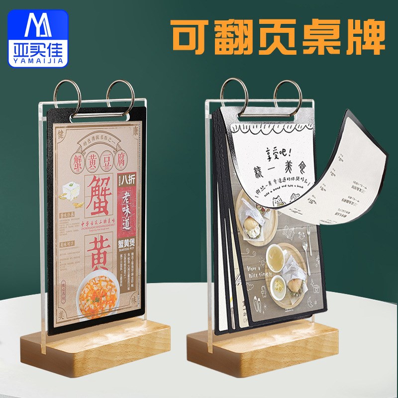 翻页餐牌台卡架木质台式a4亚克力透明展示牌立牌a6酒水牌价目表奶