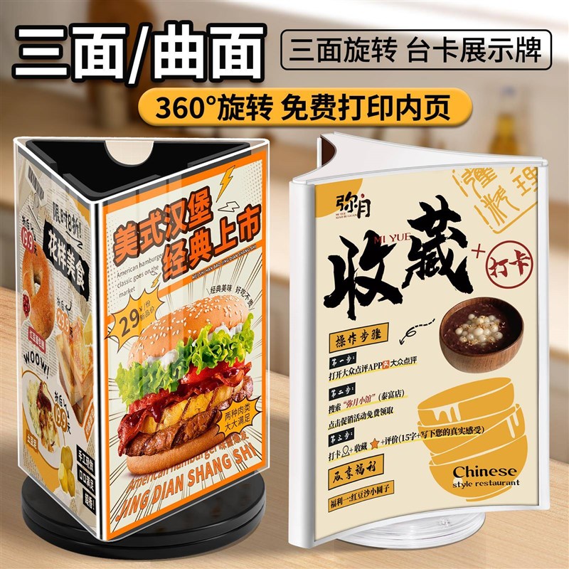 三面旋转台卡立牌桌高品质酒水牌克力台卡架六面a餐4牌a5旋转餐牌