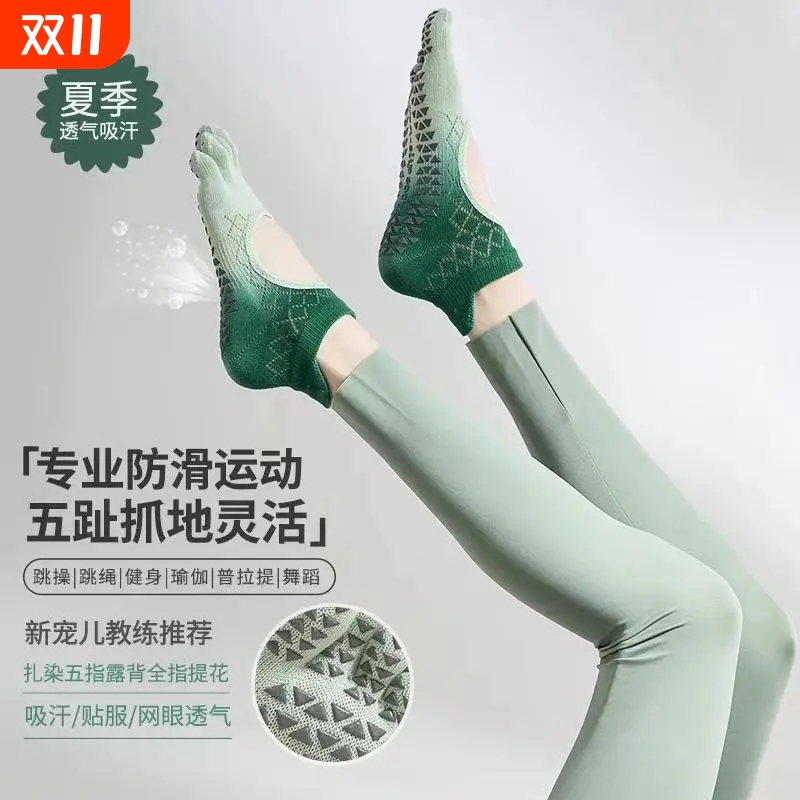 新款夏季渐变点胶瑜伽袜子女吸汗专业防滑五指袜普拉提袜分趾露背