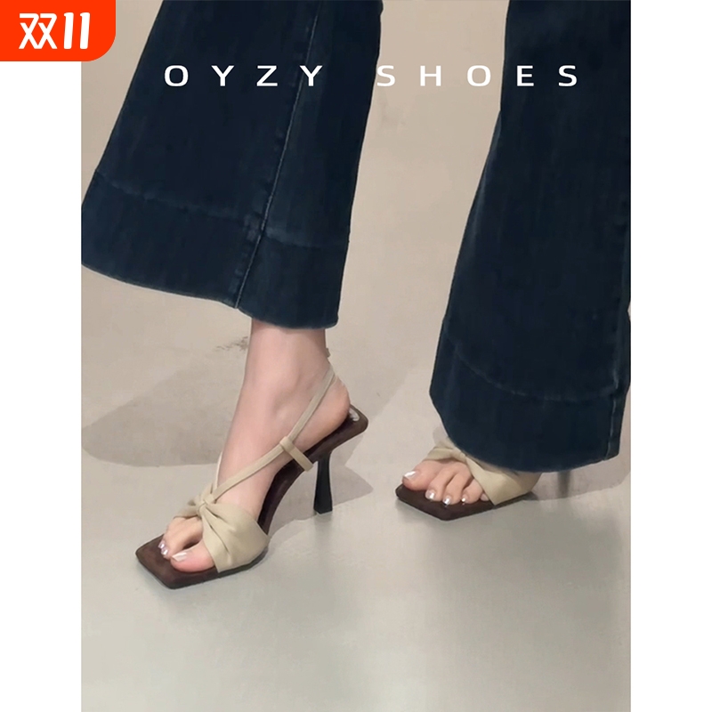 大东dd粗跟法式凉鞋女款夏季2025绝美时装配裙子露趾凉拖百搭女