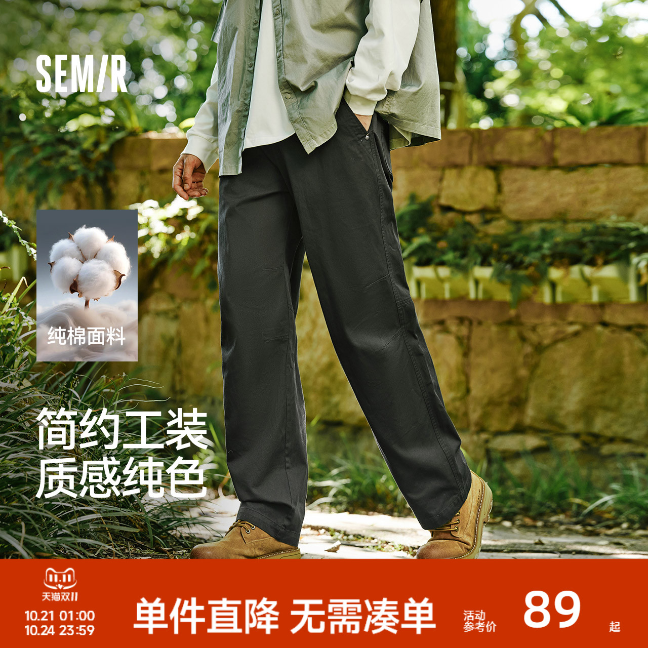 森马纯色宽松直筒裤纯棉工装裤男