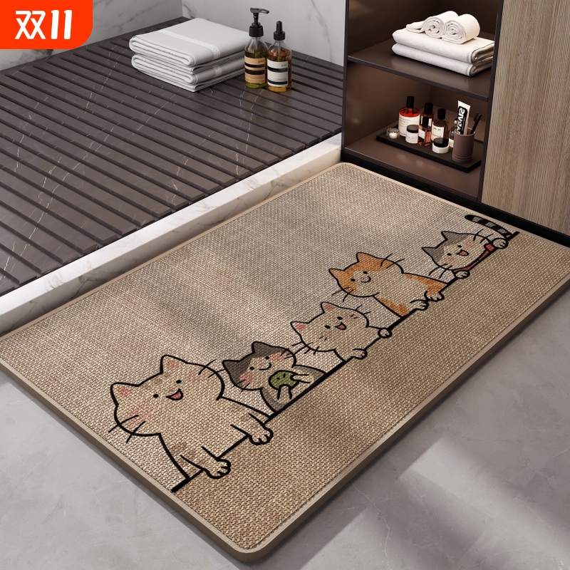 浴室地垫脚垫吸水卡通可爱卫生间硅藻泥厕所门口速干防滑门垫防摔