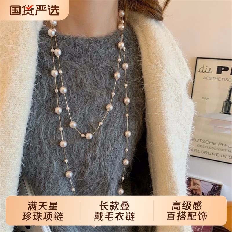 满天星长款珍珠叠戴项链女轻奢小众高级感毛衣链2025新款百搭配饰