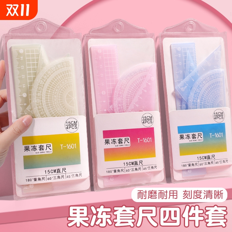 精美果冻色尺子学生套装尺20cm直尺三角板量角器高颜值测量绘图尺
