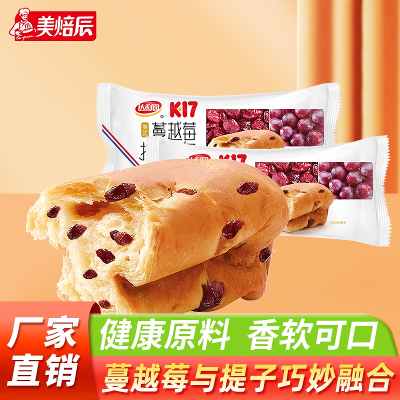 美焙辰糕点蔓越莓提子面包120g营养早餐独立包装解馋饱腹健康好吃