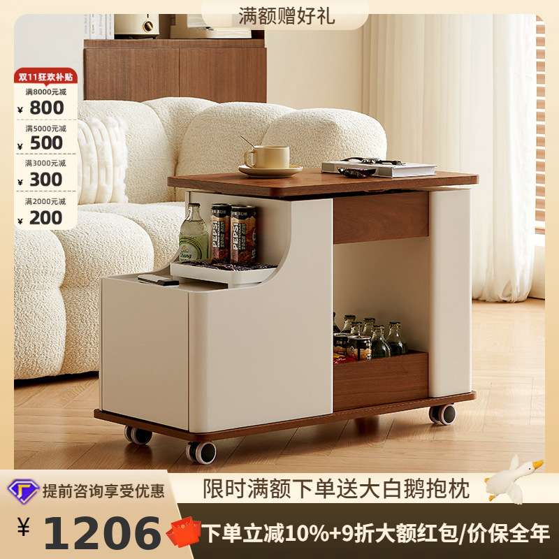 桐语特灵动边几现代简约可移动小户型复古风客厅家用推车升降茶几